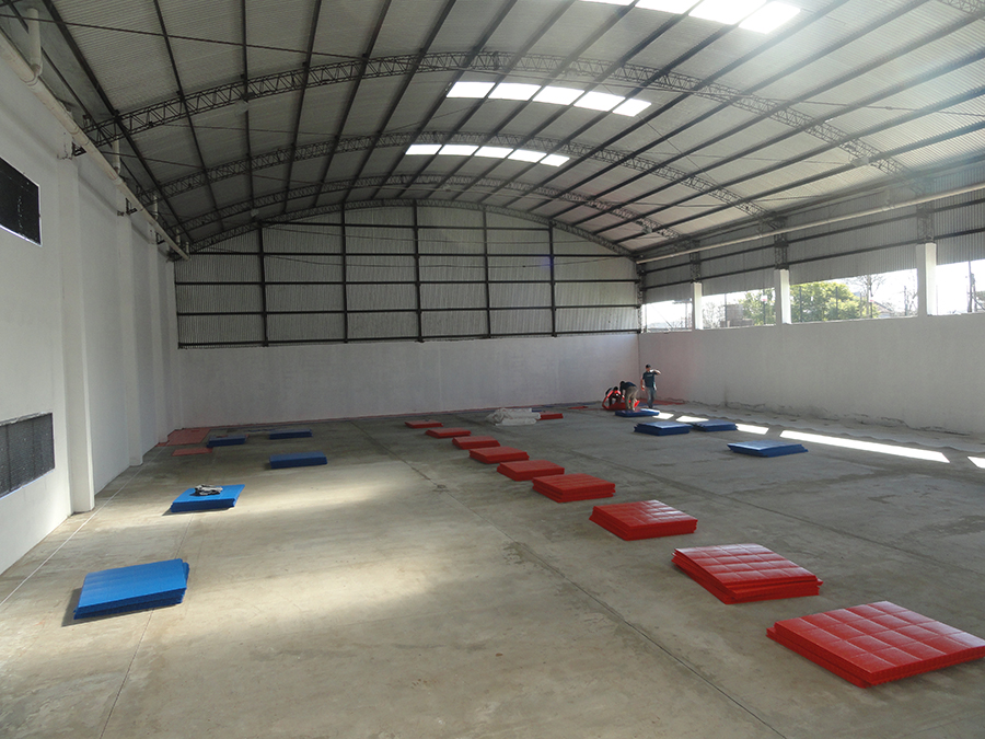 Cancha multifuncional La Plata Pisos lisos, Azul y rojo
